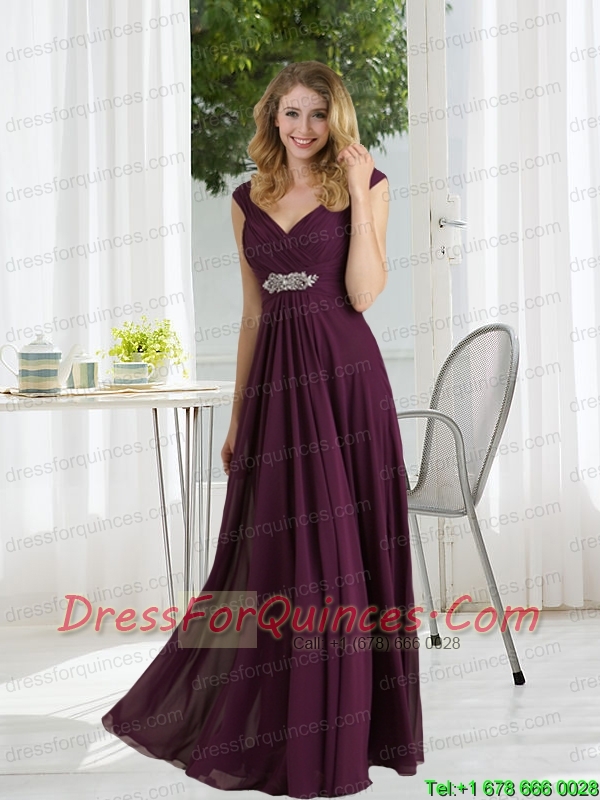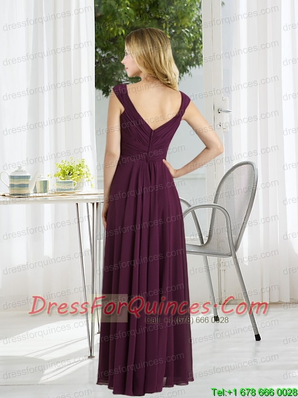 Empire 2015 Dark Purple Ruching Prom Dress with Cap Sleeves