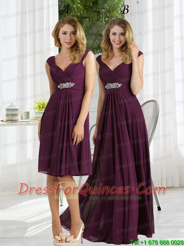 Empire 2015 Ruching Dark Purple Prom Dress with Zipper Up