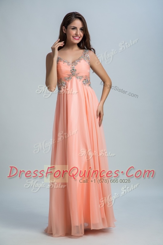 Empire Homecoming Dress Orange Straps Organza Sleeveless Floor Length Backless