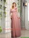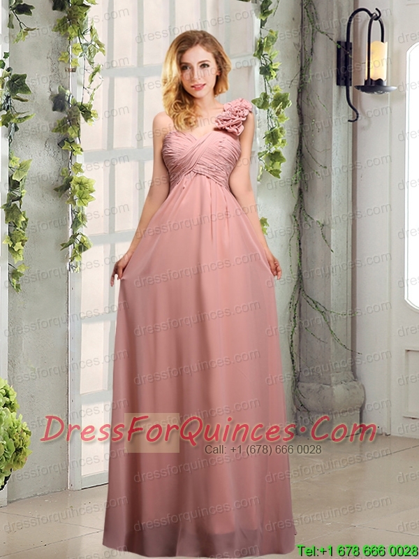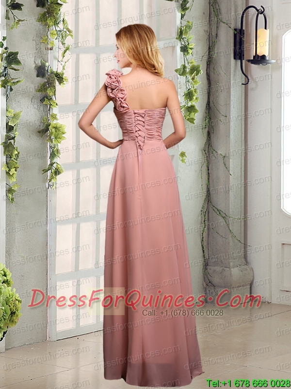 Empire Ruching One Shoulder Prom Dresses with Hand Made Flowers