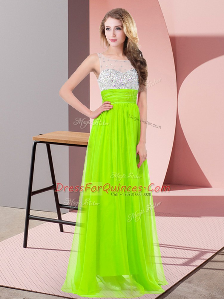 Empire Scoop Sleeveless Chiffon Floor Length Side Zipper Sequins Prom Gown