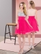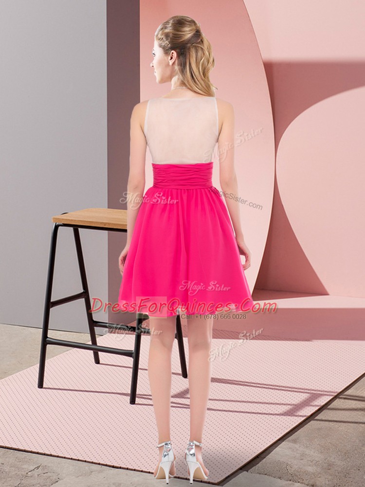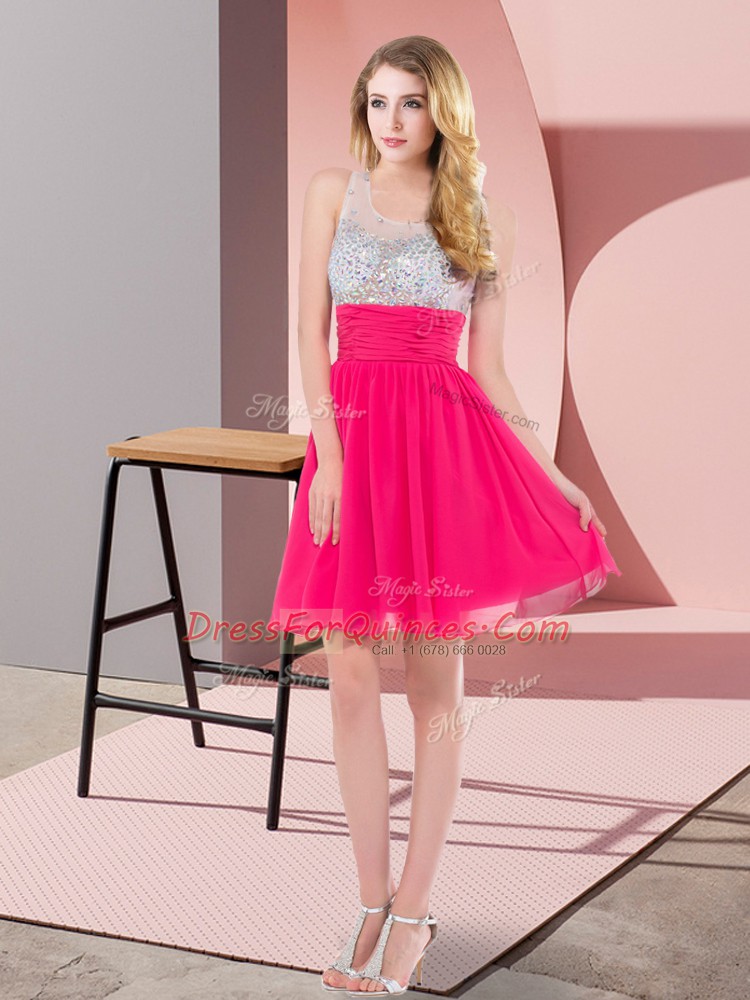 Fabulous Mini Length Hot Pink Prom Gown Chiffon Sleeveless Sequins