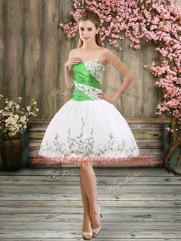 Fantastic White Sweetheart Lace Up Embroidery Homecoming Dress Sleeveless