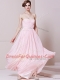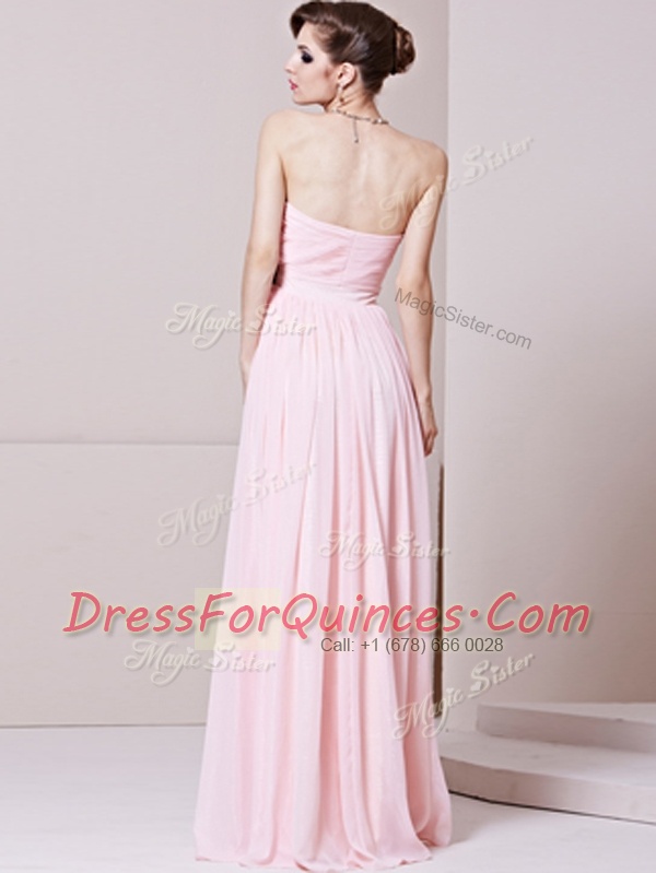 Fashionable Baby Pink Chiffon Zipper Homecoming Dress Sleeveless Floor Length Beading