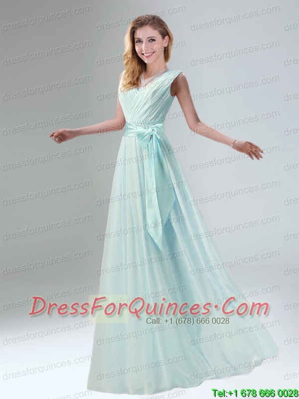 Fashionable Belt Ruching Chiffon Prom Dress with Bowknot