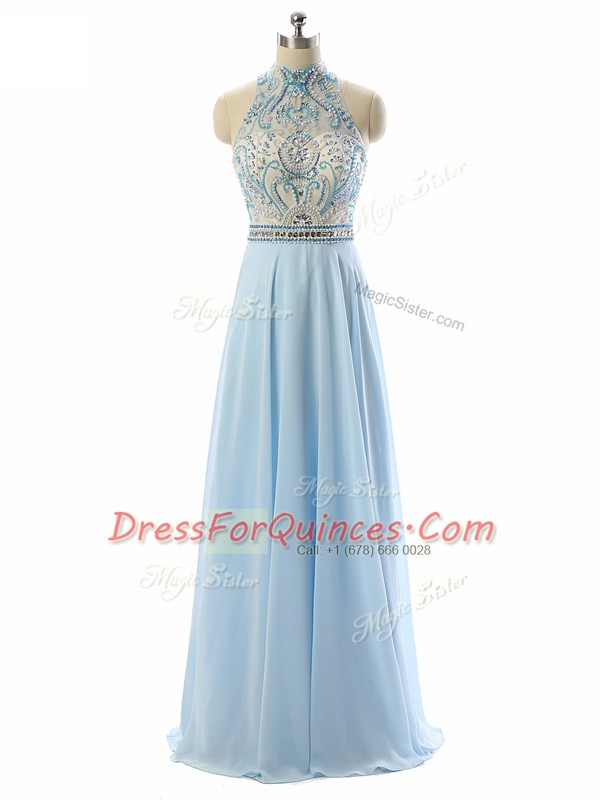 Floor Length Empire Sleeveless Light Blue Prom Evening Gown Backless