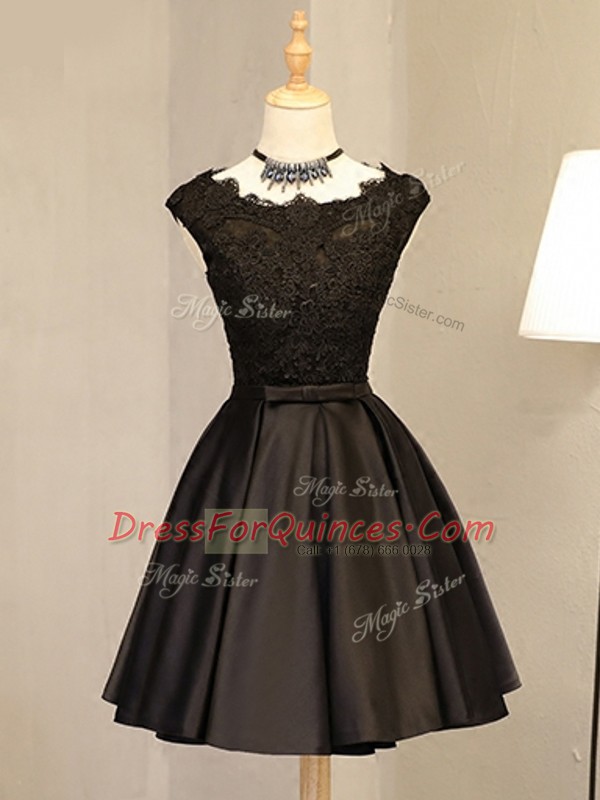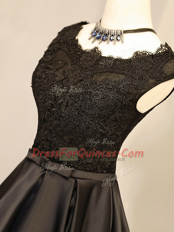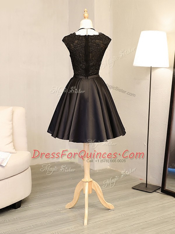 Graceful A-line Prom Evening Gown Black Scoop Satin Sleeveless Mini Length Zipper