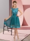 Graceful Empire Teal Scoop Chiffon Sleeveless Knee Length Backless