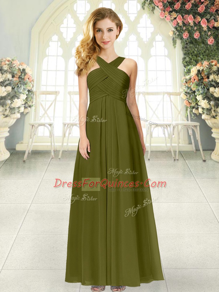 Great Chiffon Sleeveless Floor Length Prom Gown and Ruching