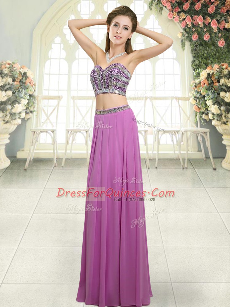 Great Floor Length Two Pieces Sleeveless Lilac Backless