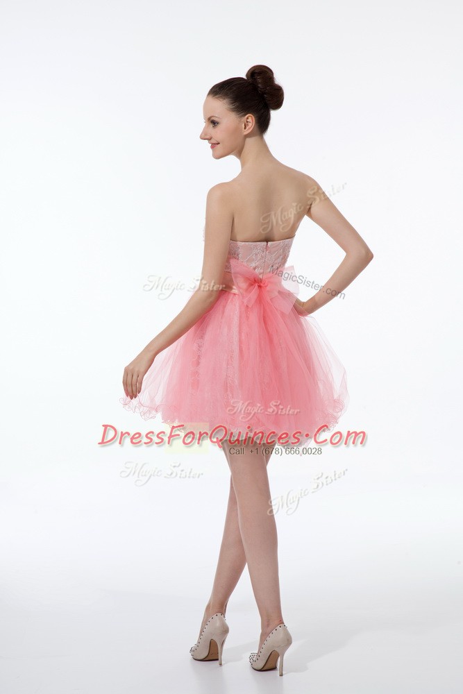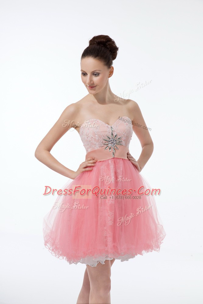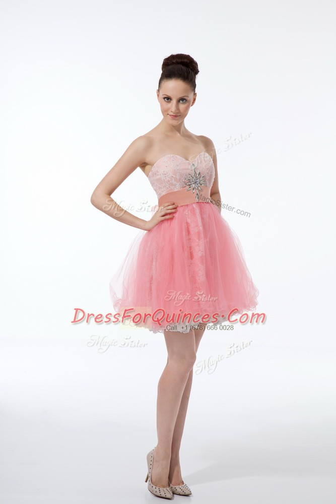 High Class Baby Pink Sleeveless Mini Length Lace and Appliques Zipper Homecoming Dress