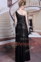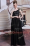 High Class One Shoulder Sleeveless Prom Gown Floor Length Appliques Black Chiffon