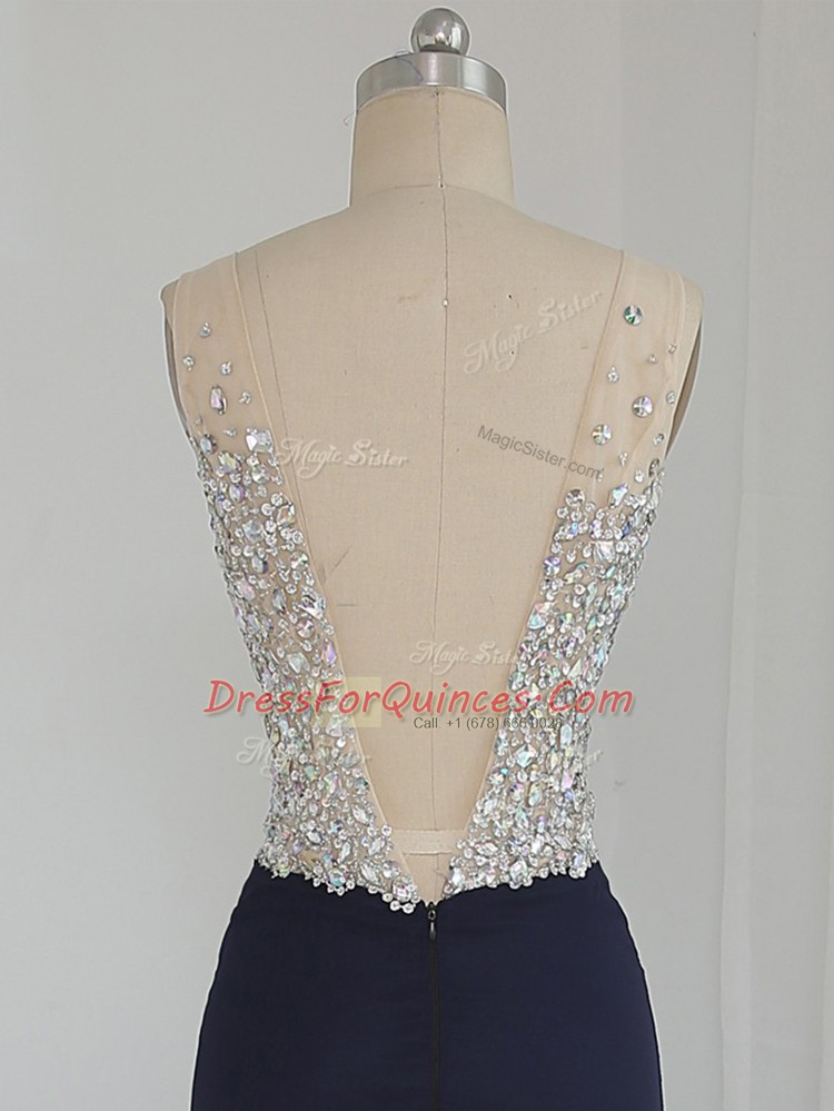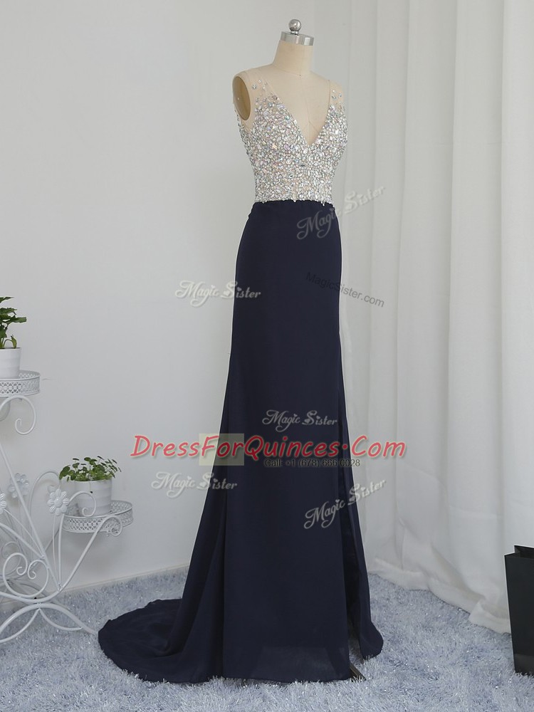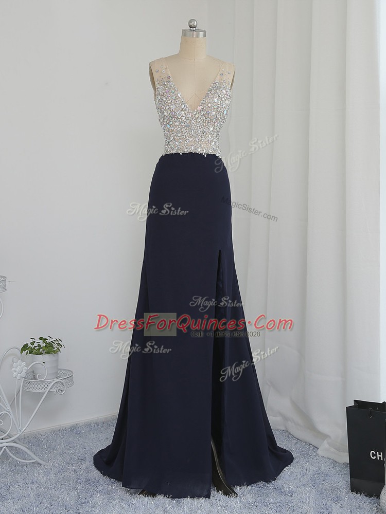 Hot Sale Black Backless V-neck Beading Evening Dress Chiffon Sleeveless