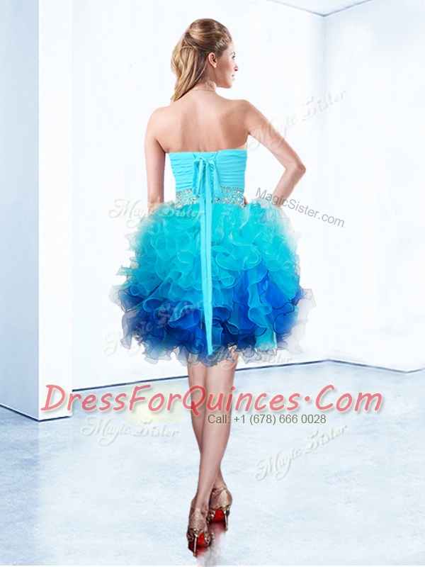 Ideal Blue Sweetheart Neckline Beading and Ruffles and Ruching Prom Evening Gown Sleeveless Lace Up