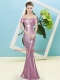 Inexpensive Sequins Homecoming Dress Baby Pink Zipper Short Sleeves Floor Length