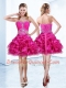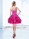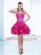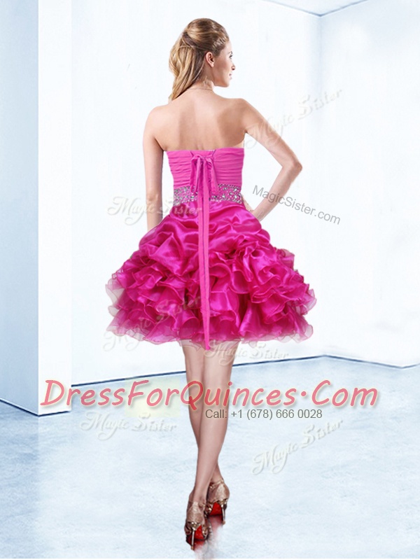 Latest Organza Sweetheart Sleeveless Lace Up Beading and Ruffles and Pick Ups Dress for Prom in Hot Pink