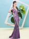 Lavender Sequined Zipper Homecoming Dress Sleeveless Floor Length Sequins
