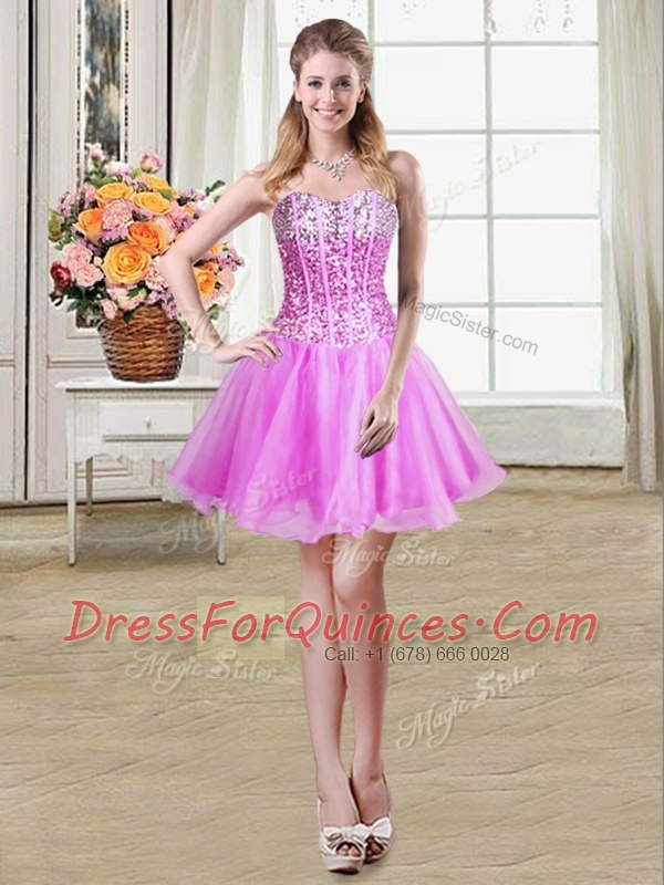 Lilac Lace Up Sweetheart Sequins Dress for Prom Organza Sleeveless