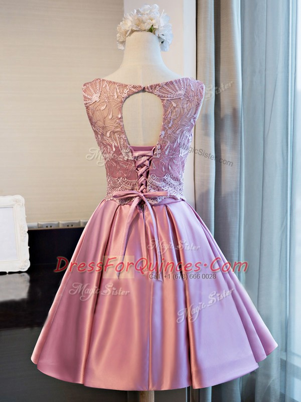 Lilac Scoop Lace Up Lace and Appliques and Belt Prom Party Dress Sleeveless