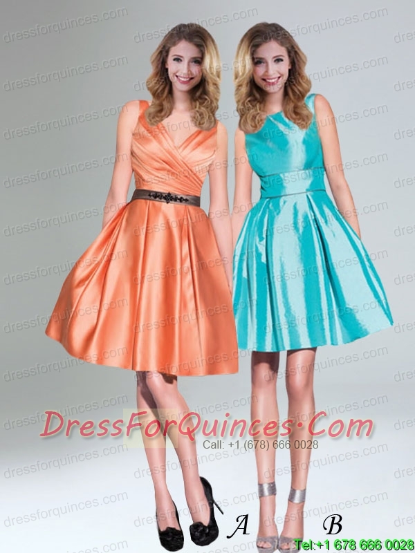 Low Price Orange Taffeta Short V Neck Prom Dresses