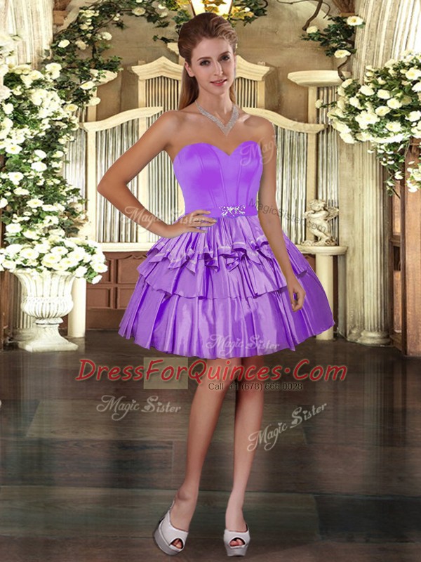 Luxurious Purple Ball Gowns Ruffled Layers Prom Dress Lace Up Taffeta Sleeveless Mini Length