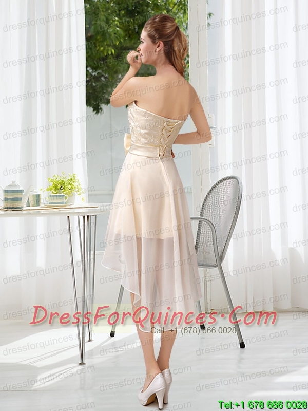 Luxurious Strapless A Line Prom Dress with Belt and Lace