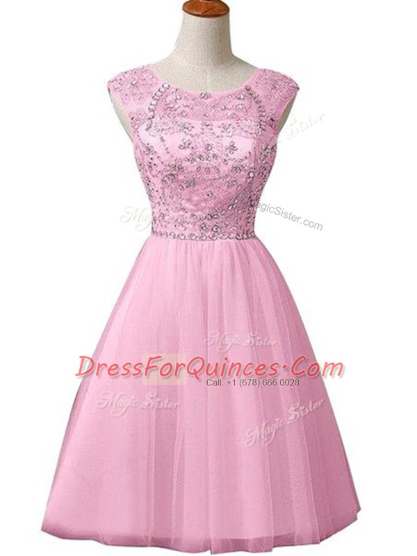 Mini Length Baby Pink Dress for Prom Scoop Sleeveless Zipper