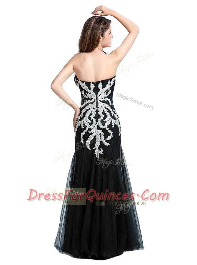 New Style Black Tulle Zipper Sleeveless Floor Length Beading and Lace