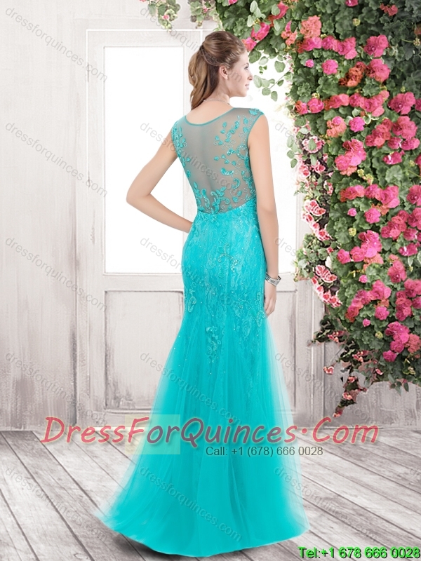 New Style Mermaid Bateau Laced Prom Dresses with Beading