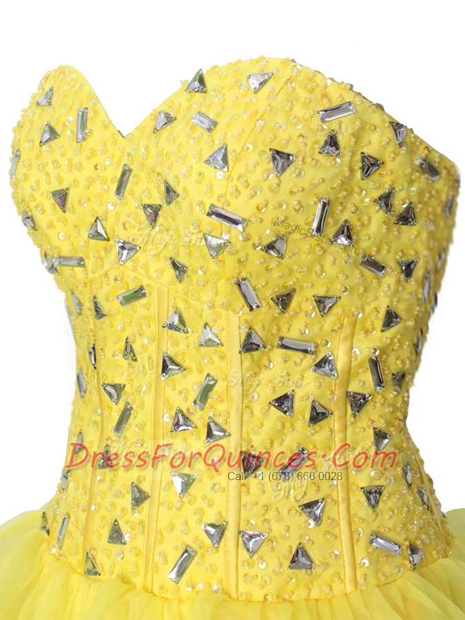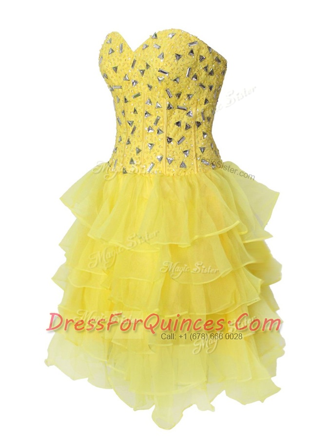 Nice Sleeveless Chiffon Mini Length Zipper in Yellow with Beading and Ruffled Layers