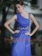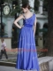 Noble One Shoulder Blue Chiffon Side Zipper Homecoming Dress Sleeveless Floor Length Hand Made Flower