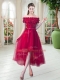 Off The Shoulder Short Sleeves Evening Dress High Low Appliques Red Tulle