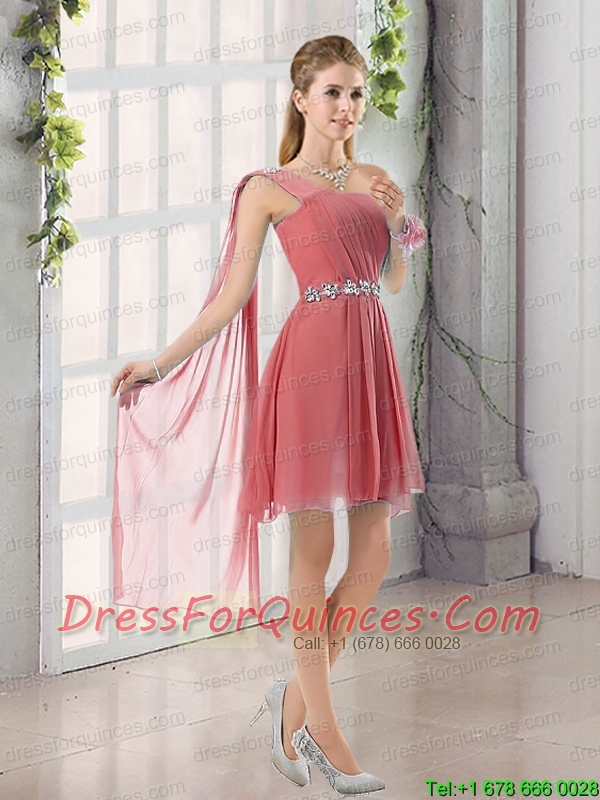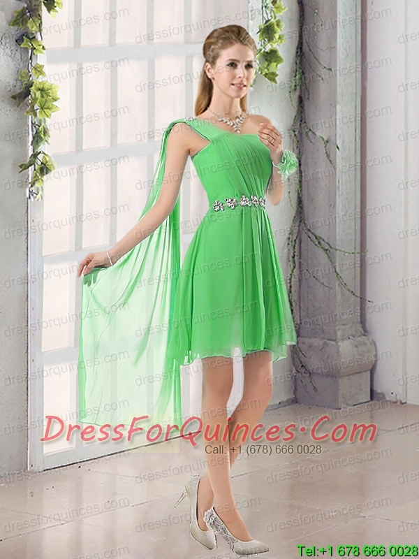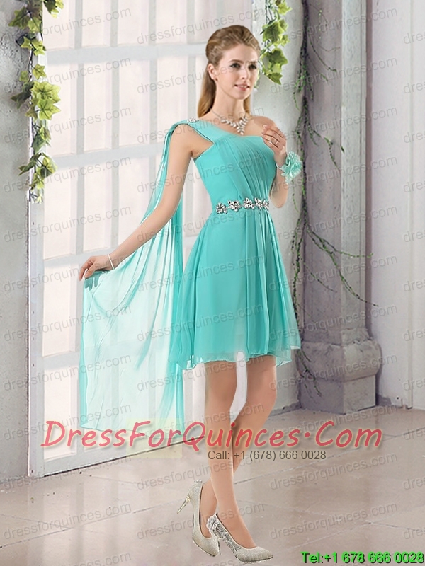 One Shoulder A Line Beading and Ruching Prom Dress with Lace Up