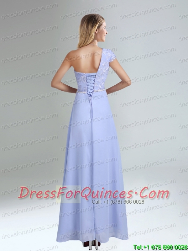 One Shoulder Belt Empire 2015 Appliques Prom Dress in Lavender