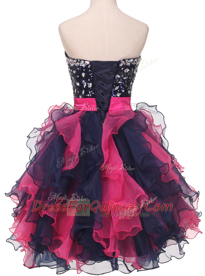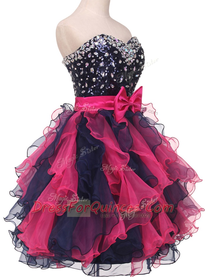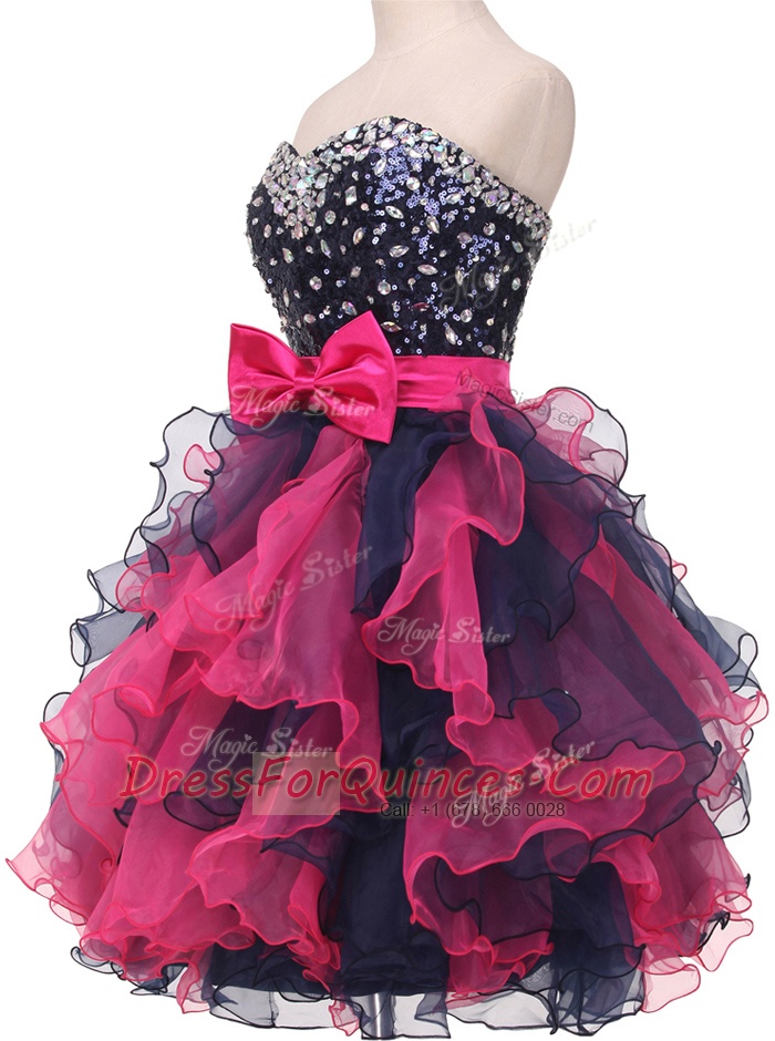 Organza Sleeveless Knee Length Prom Dress and Beading and Ruffles and Bowknot