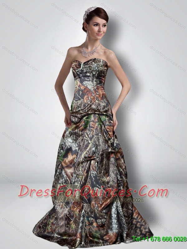 Perfect A Line Sweetheart Beading Camo 2015 Prom Dresses with Outdoor