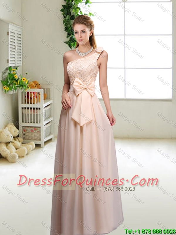 Perfect Bowknot Scoop Prom Dresses in Champagne