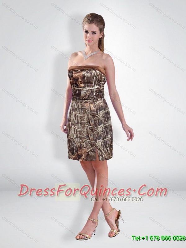 Perfect Short Strapless Camo 2015 Prom Dresses with Ruching