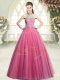 Pink Prom and Party with Beading Halter Top Sleeveless Zipper