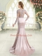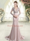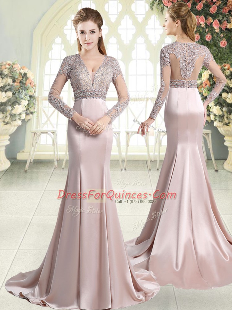 Pink Satin Sweep Train Long Sleeves Beading and Lace