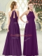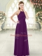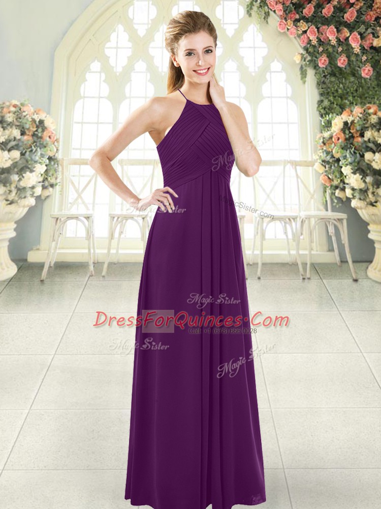 Pretty Purple Empire Halter Top Sleeveless Chiffon Floor Length Zipper Ruching Homecoming Dress