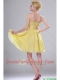 Pretty Yellow Mini Length Prom Dresses with Spaghetti Straps