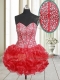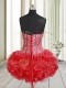 Red Lace Up Sweetheart Beading and Ruffles Prom Party Dress Organza Sleeveless