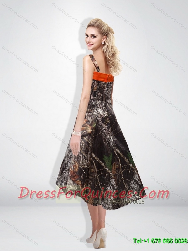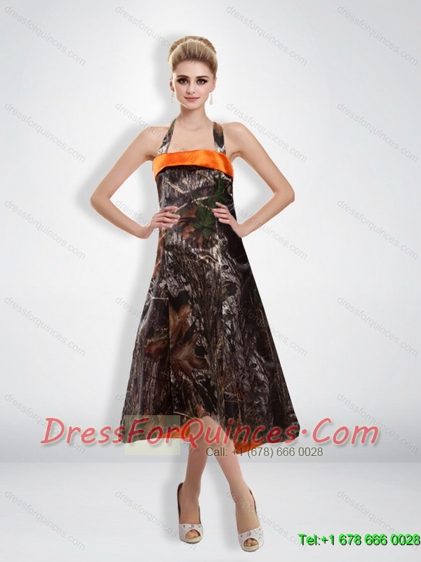 Romantic 2015 Empire Halter Camo Prom Dress with Tea Length