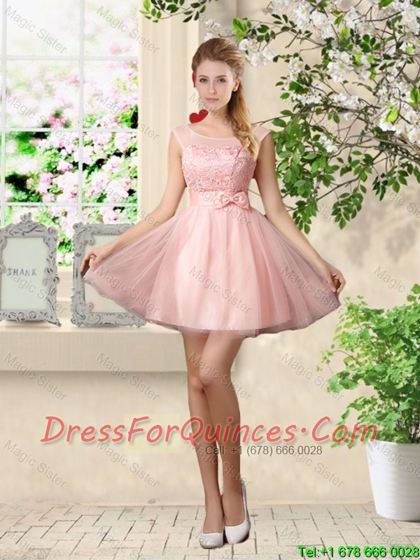 Romantic One Shoulder Laced and Bowknot Prom Dresses in Pink