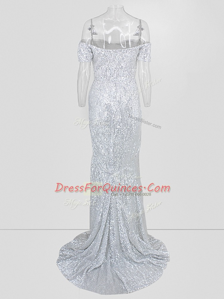 Romantic Silver Mermaid Sequins Dress for Prom Short Sleeves