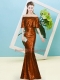 Rust Red Off The Shoulder Zipper Sequins Prom Party Dress Half Sleeves