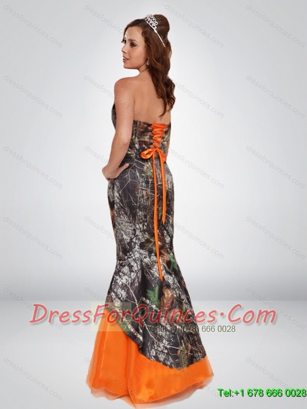 Sexy Mermaid 2015 Camo Prom Dresses with Hand Made Flower and Sashes