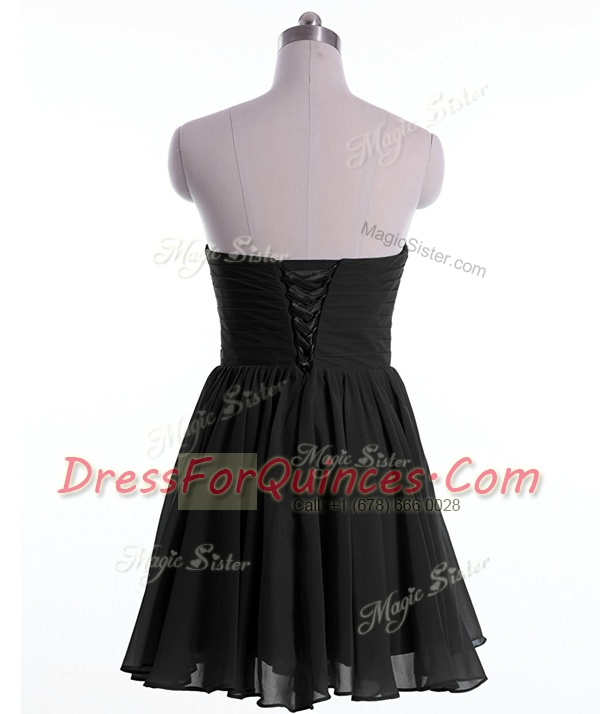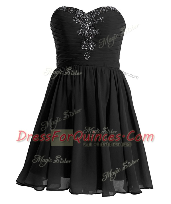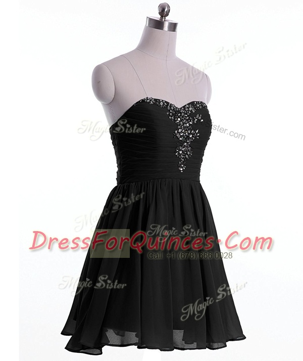 Sleeveless Mini Length Beading Lace Up Prom Evening Gown with Black