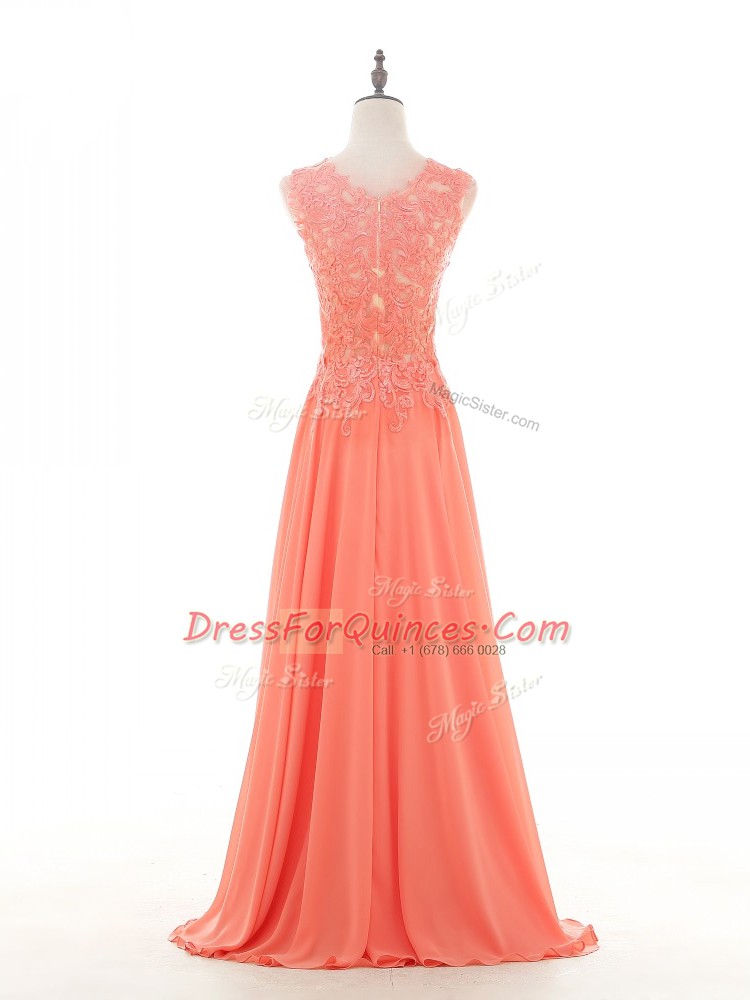 Sleeveless Zipper Floor Length Lace and Appliques Prom Party Dress